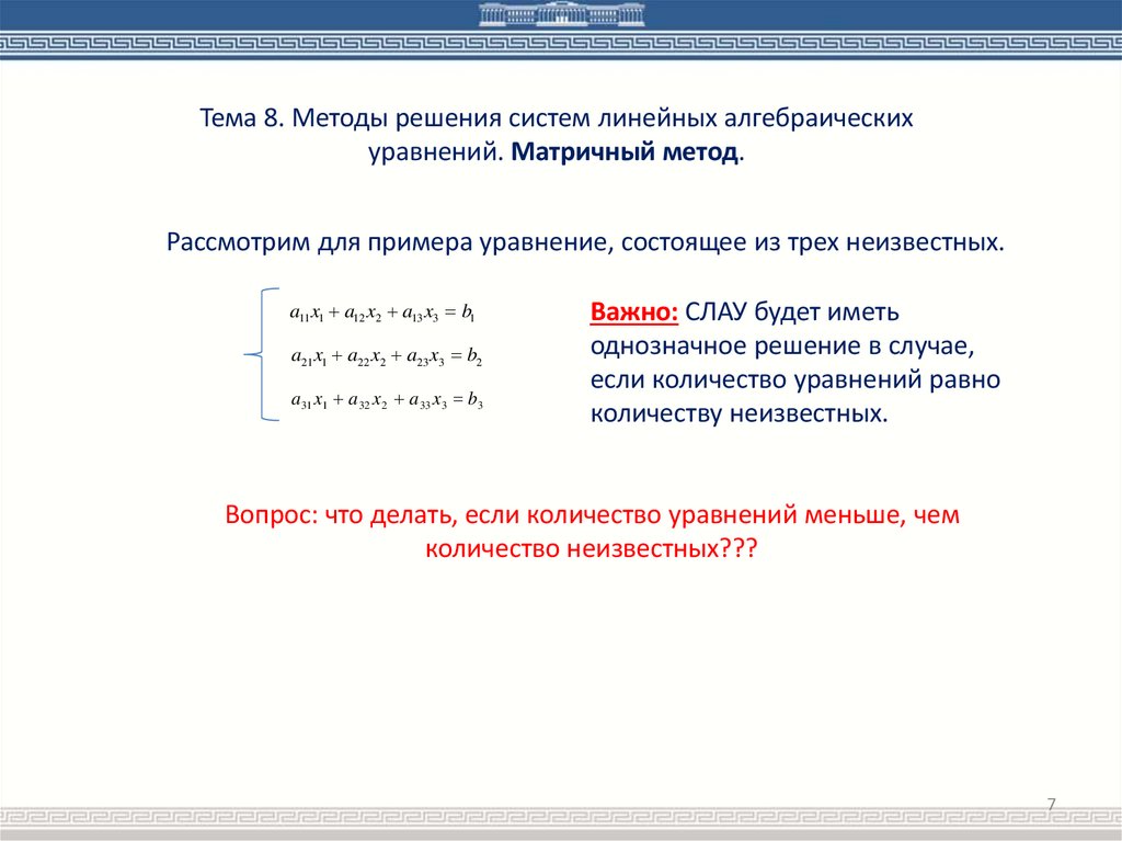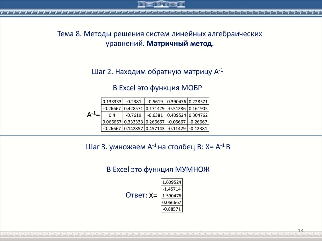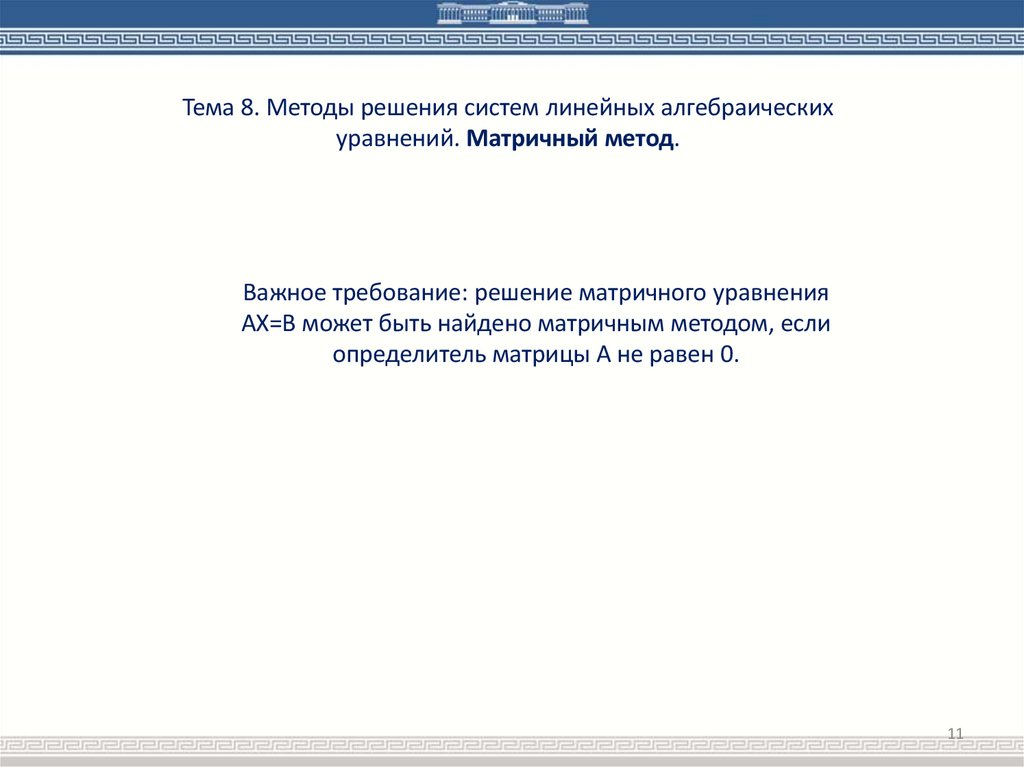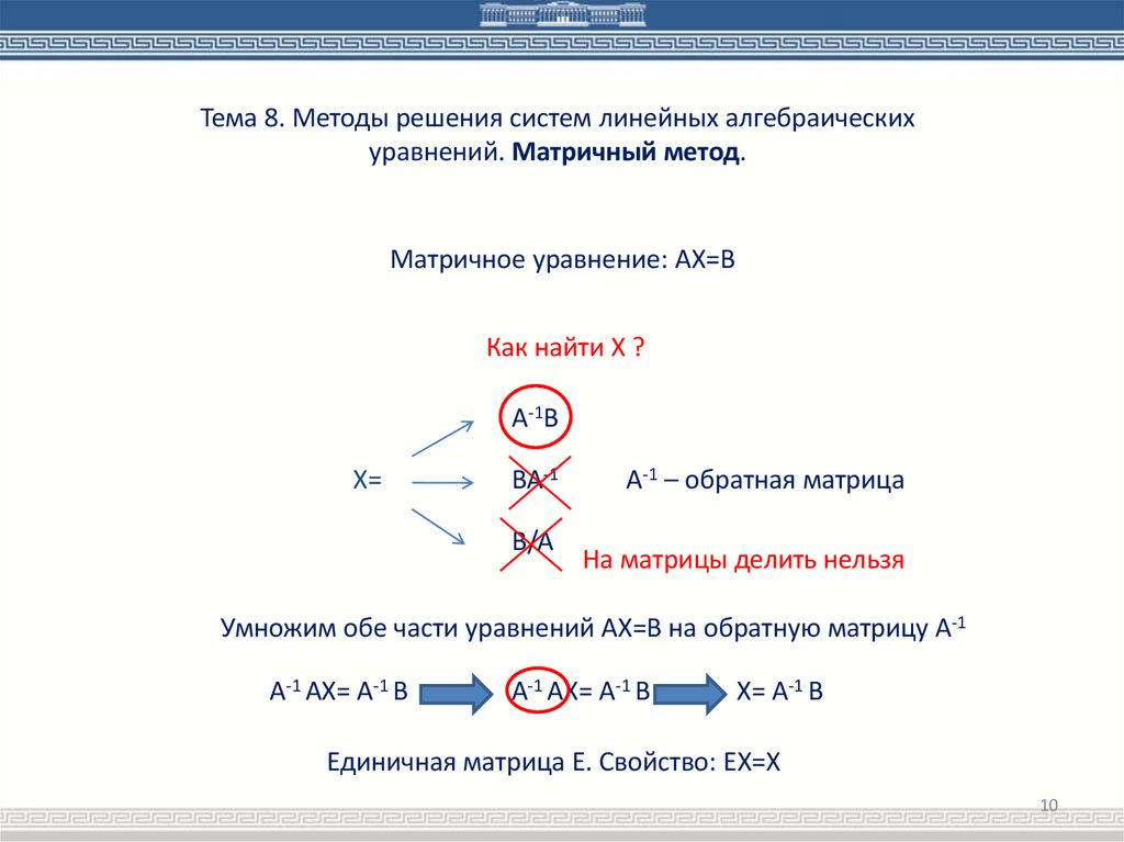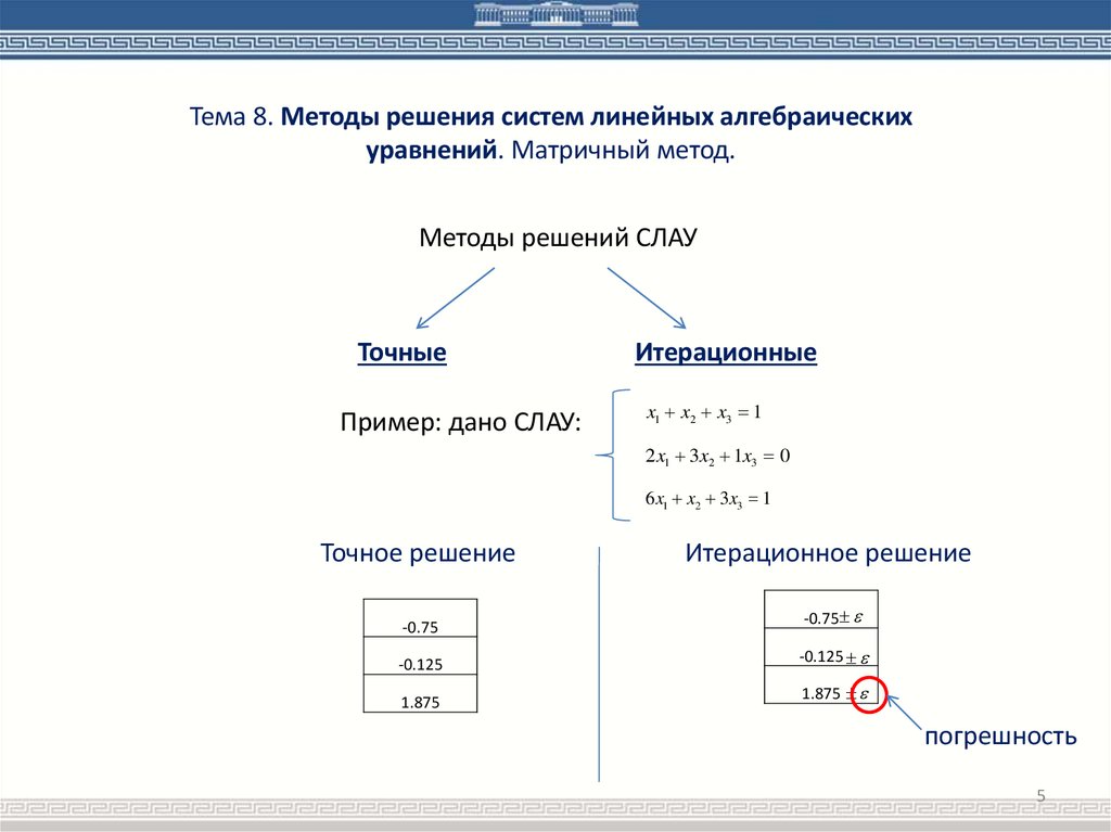Тема 8. Методы решения систем линейных алгебраическихуравнений. Матричный метод.