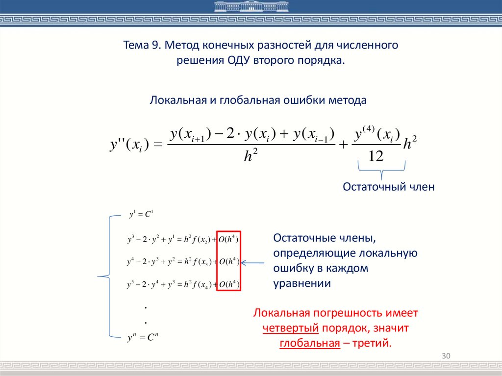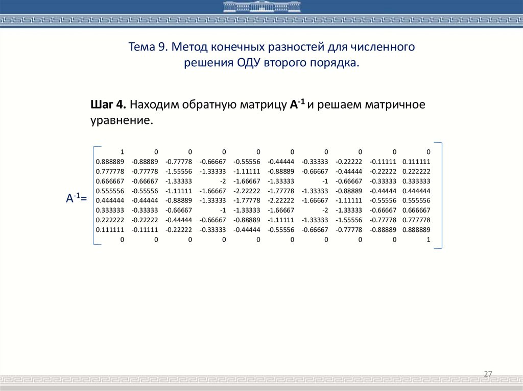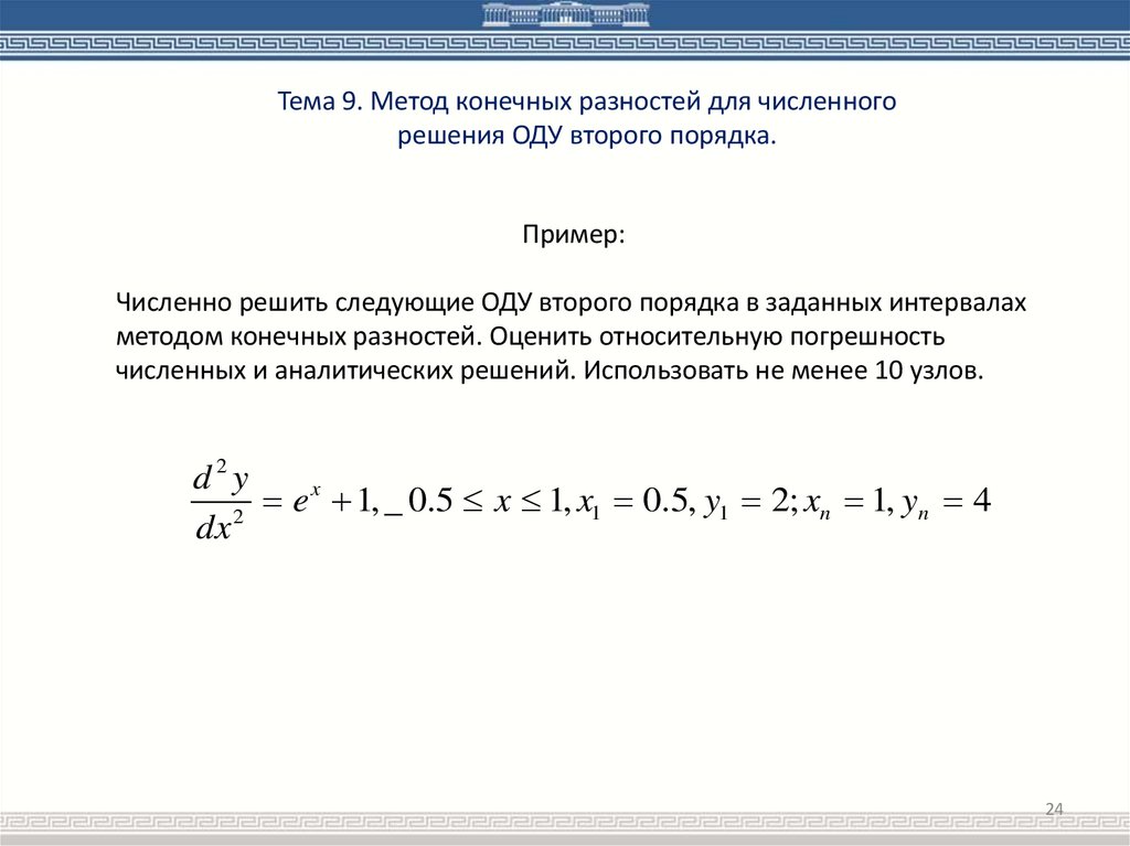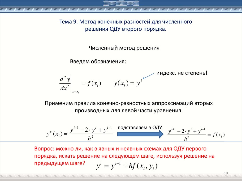 Тема 9. Метод конечных разностей для численного решения ОДУ второго