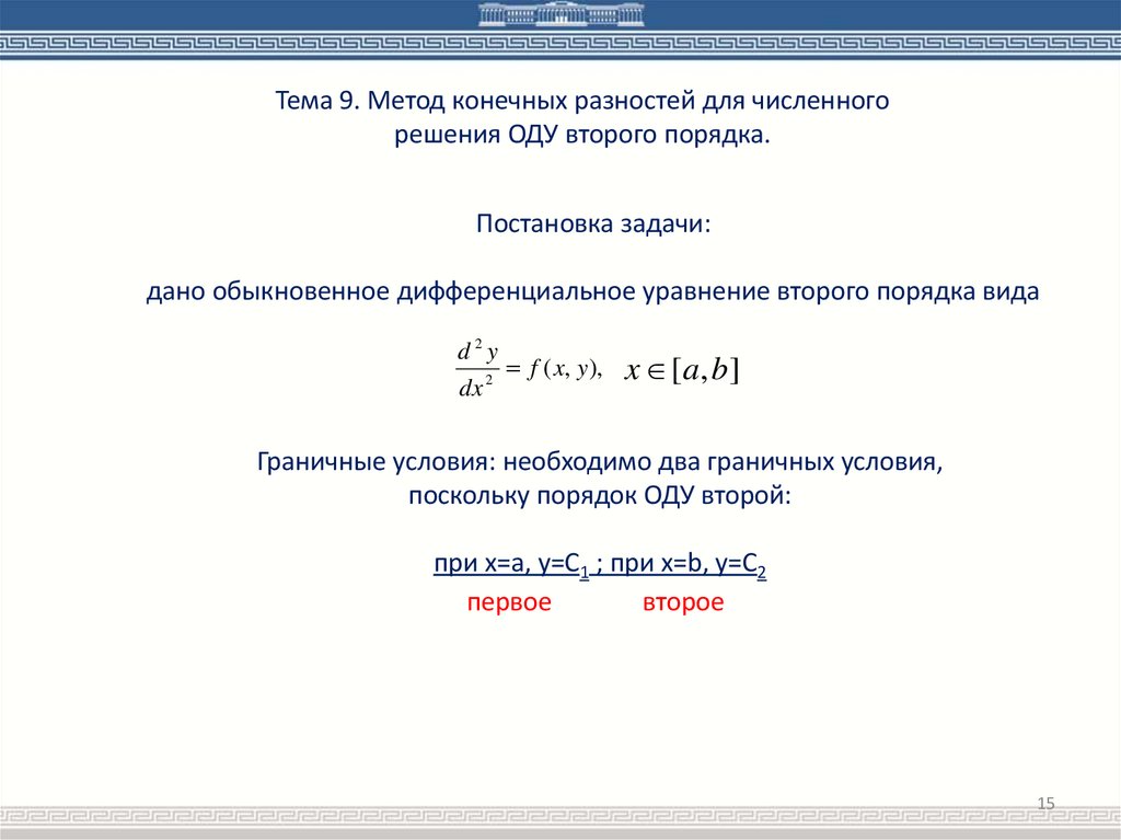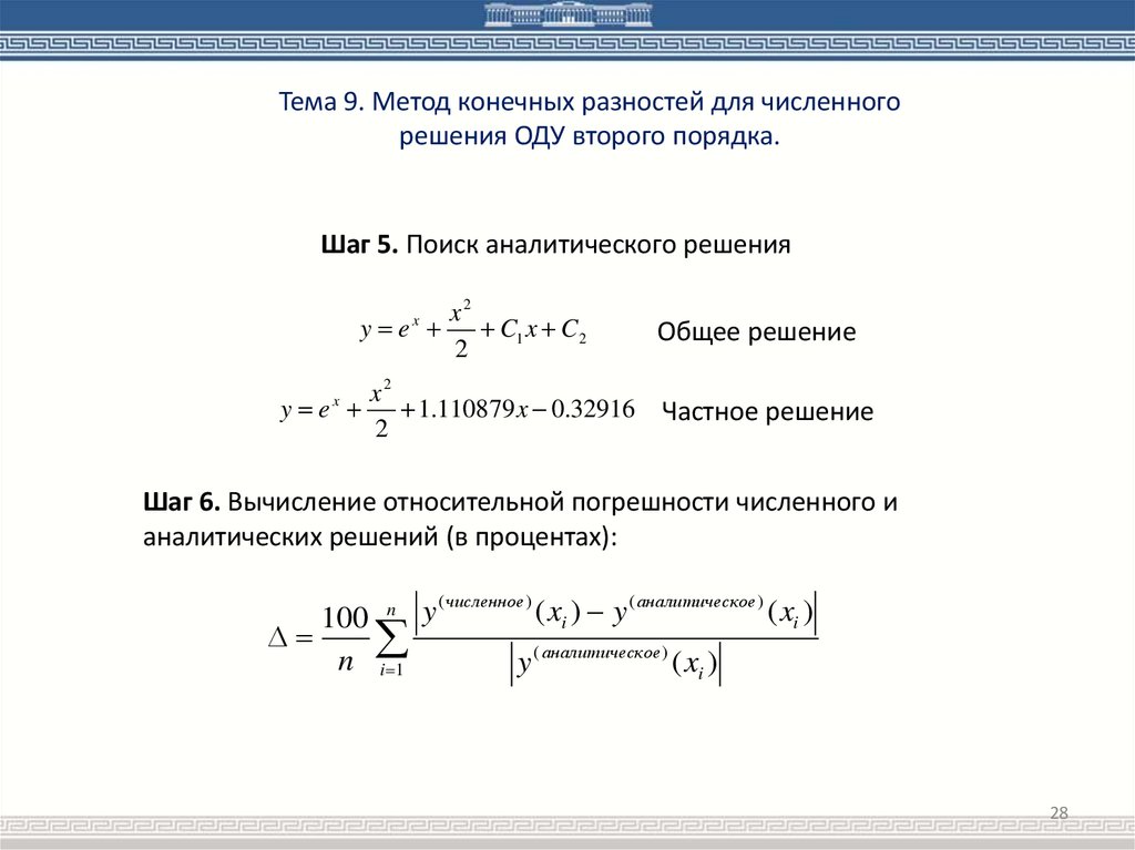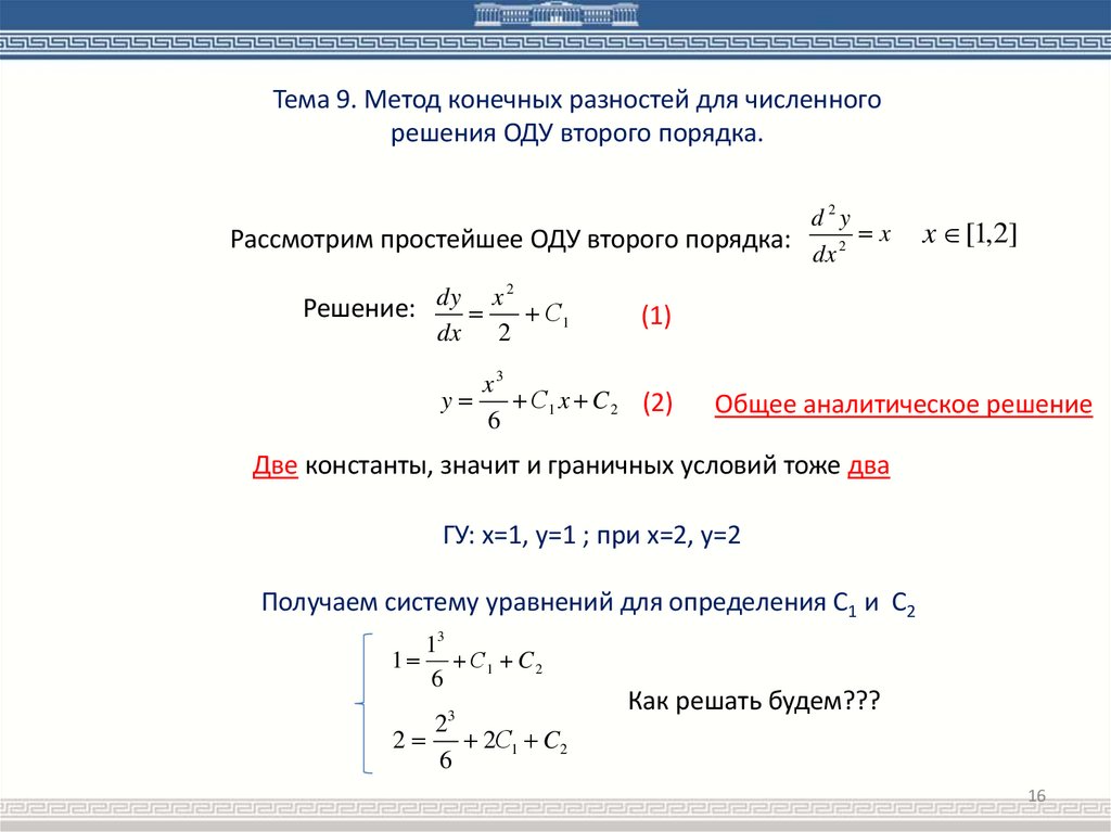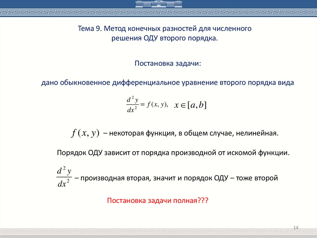 Тема 9. Метод конечных разностей для численного решения ОДУ второго