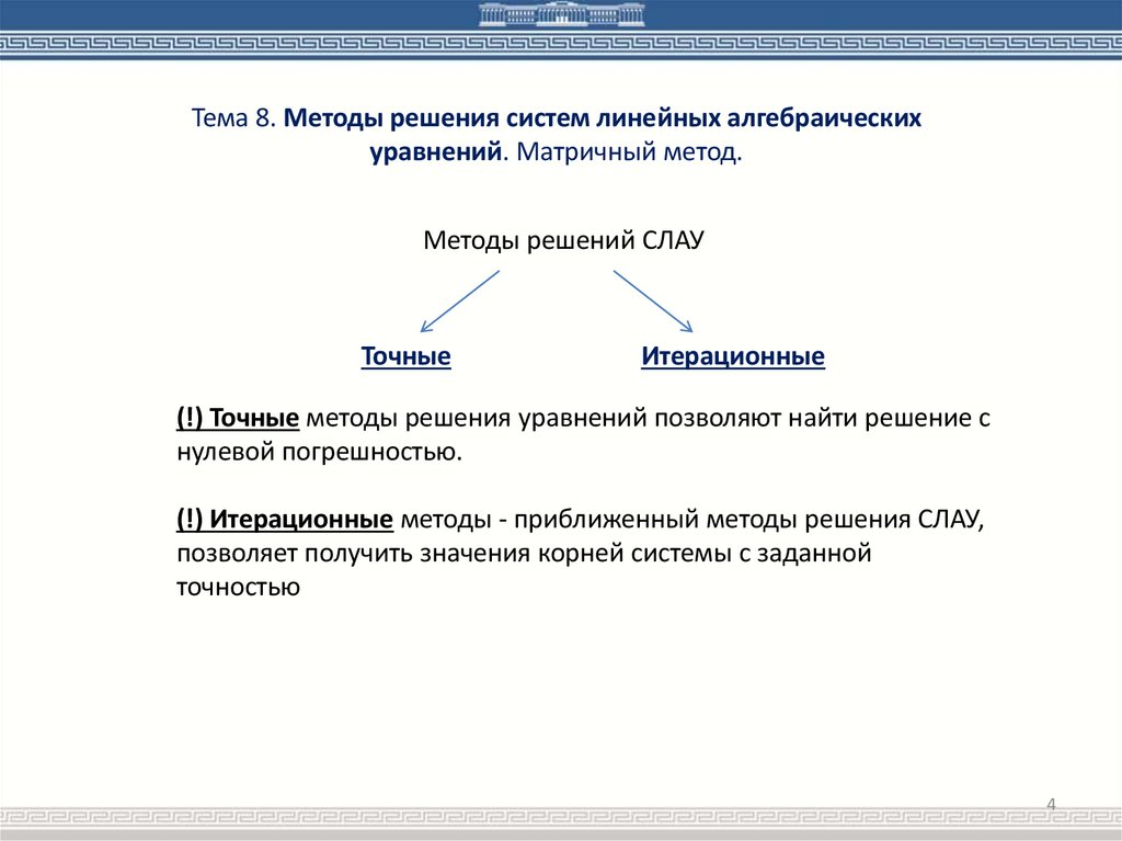 Тема 8. Методы решения систем линейных алгебраических уравнений (СЛАУ).