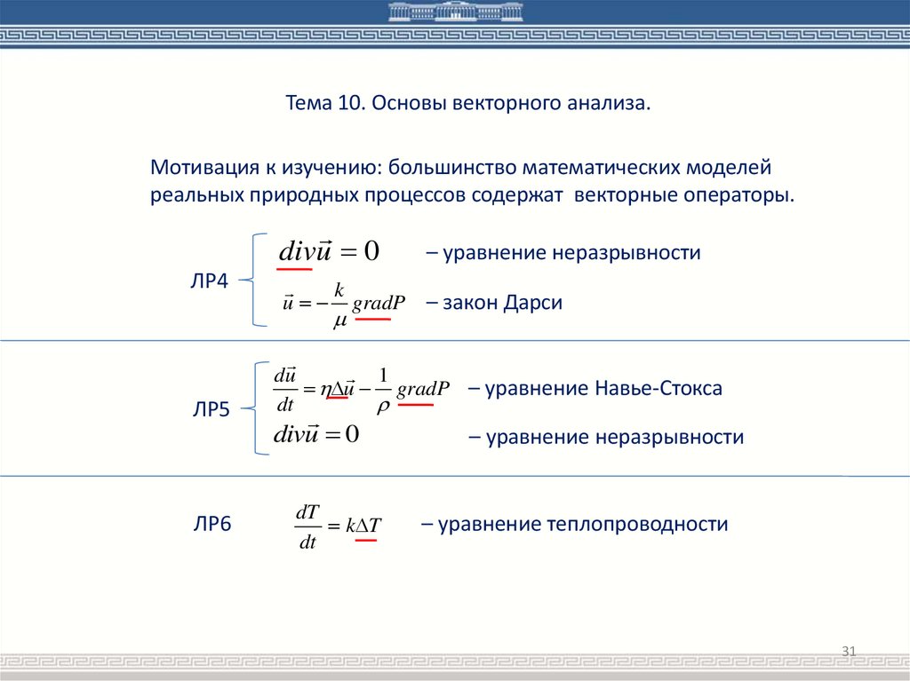 Тема 10. Основы векторного анализа.Мотивация к изучению: большинство математических моделей