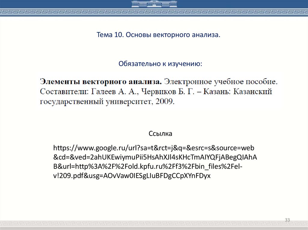 Тема 10. Основы векторного анализа.Обязательно к изучению: