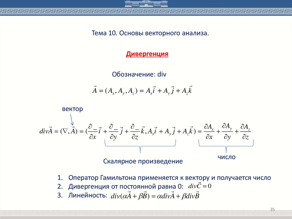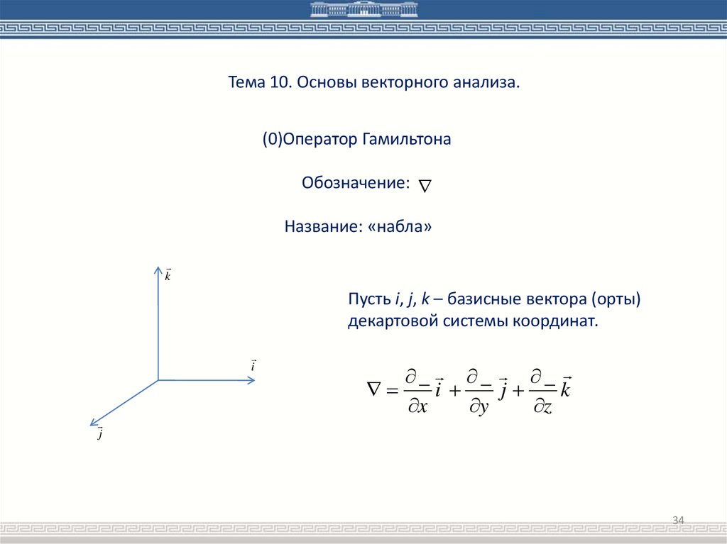 Тема 10. Основы векторного анализа.(0)Оператор Гамильтона