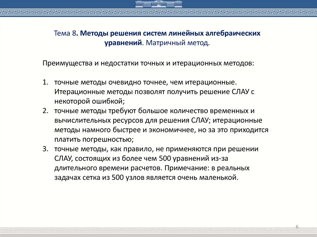 вычислительных ресурсов для решения СЛАУ; итерационные