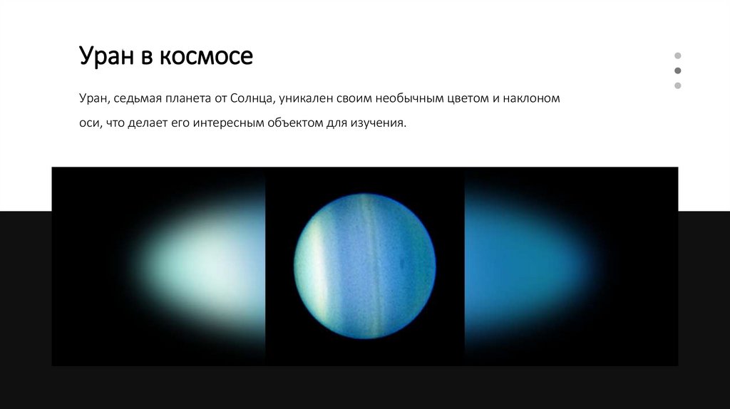 Уран в космосеУран, седьмая планета от Солнца, уникален своим необычным цветом и наклоном