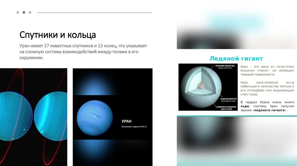 Спутники и кольцаУран имеет 27 известных спутников и 13 колец, что указывает