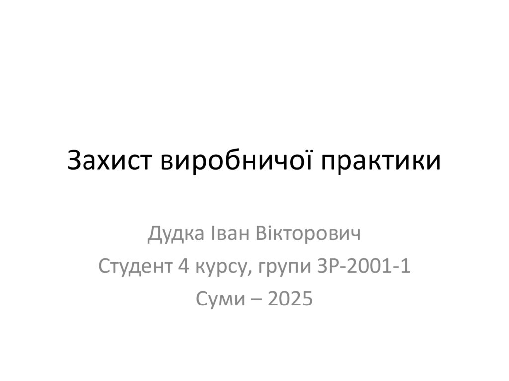 Захист виробничої практикиДудка Іван Вікторович