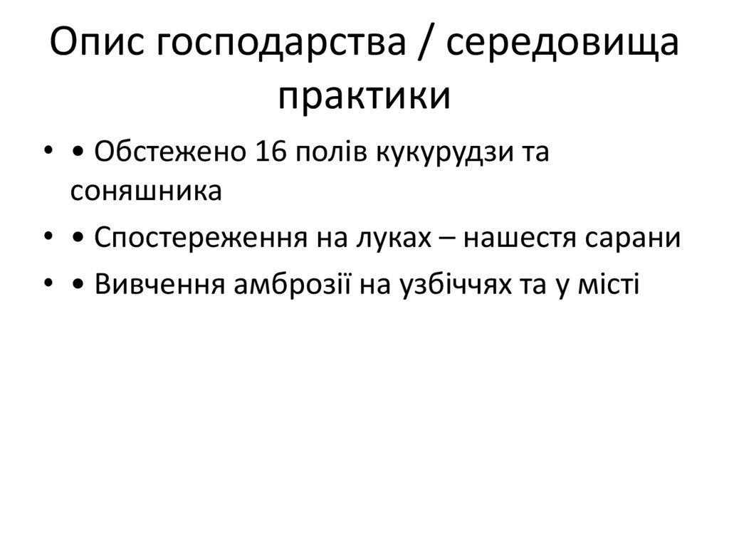 Опис господарства / середовищапрактики
