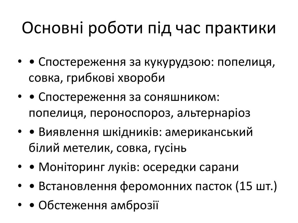 Основні роботи під час практики• • Спостереження за кукурудзою: попелиця,