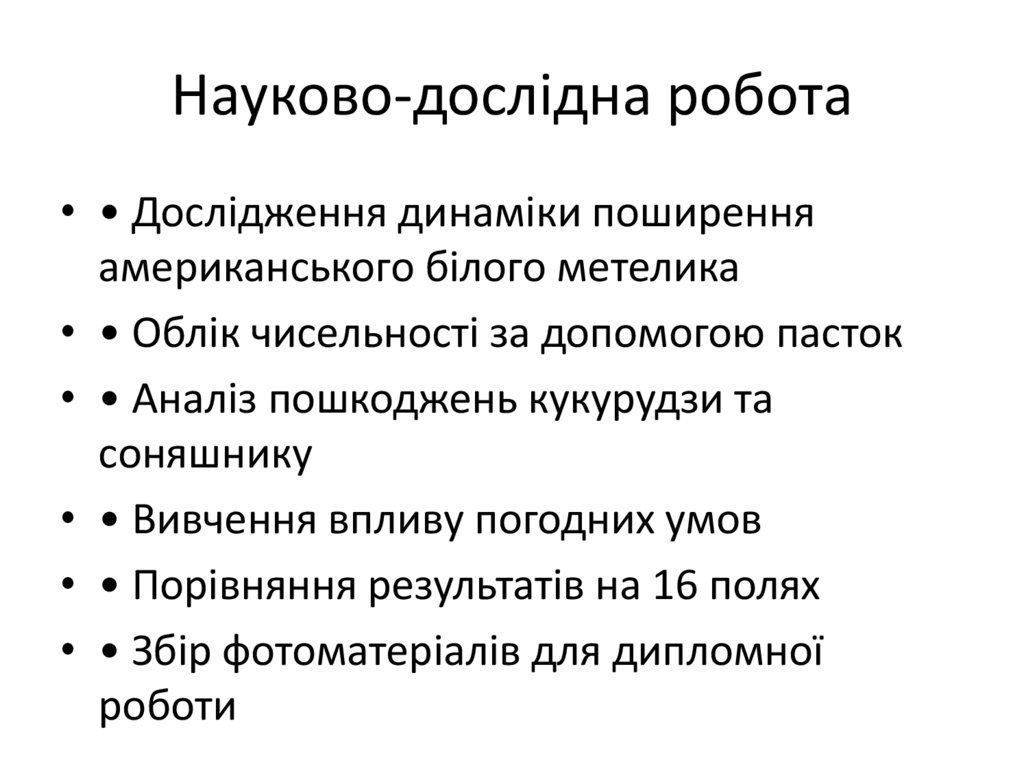Науково-дослідна робота• • Дослідження динаміки поширення