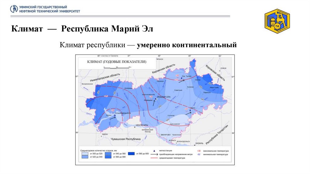Климат — Республика Марий ЭлКлимат республики — умеренно континентальный