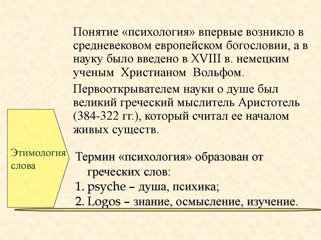 Понятие «психология» впервые возникло всредневековом европейском богословии, а в