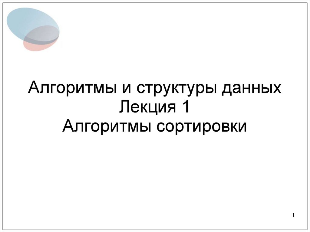 1. Алгоритмы и структуры данных Лекция 1 Алгоритмы сортировки