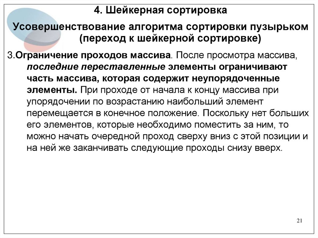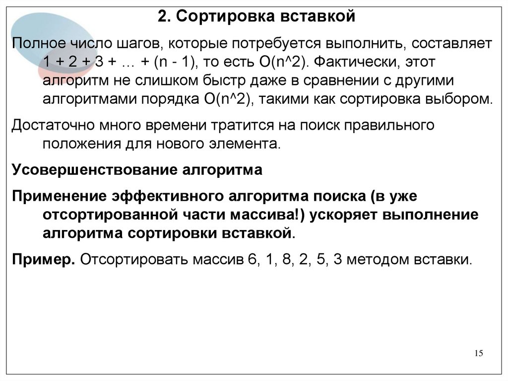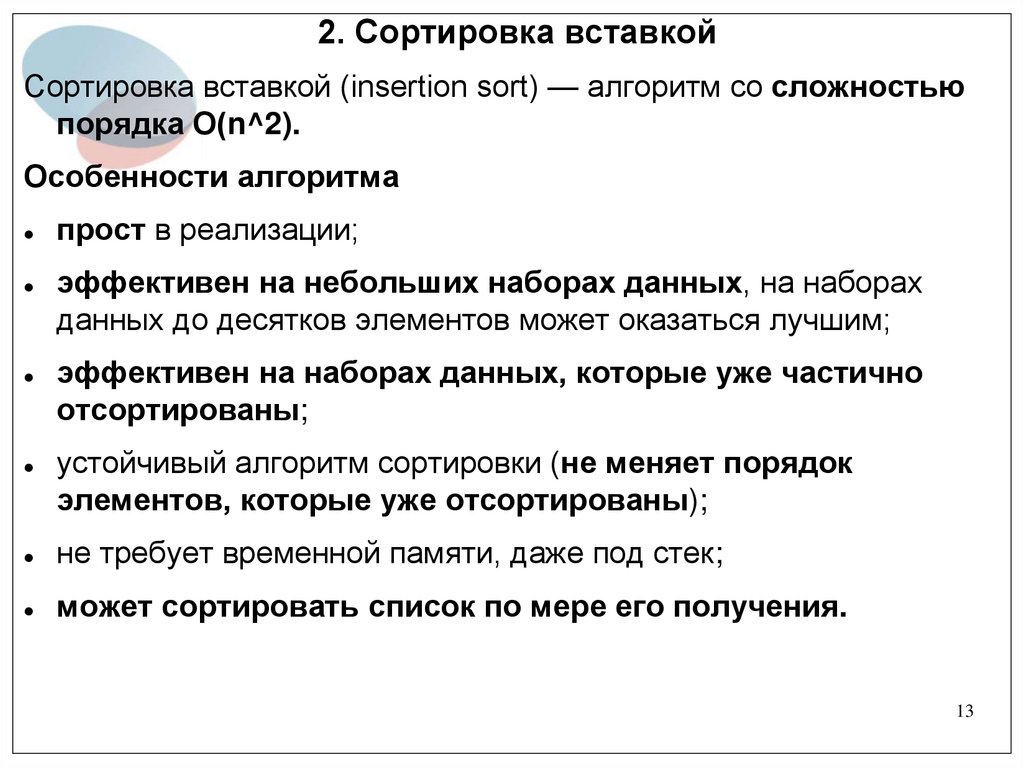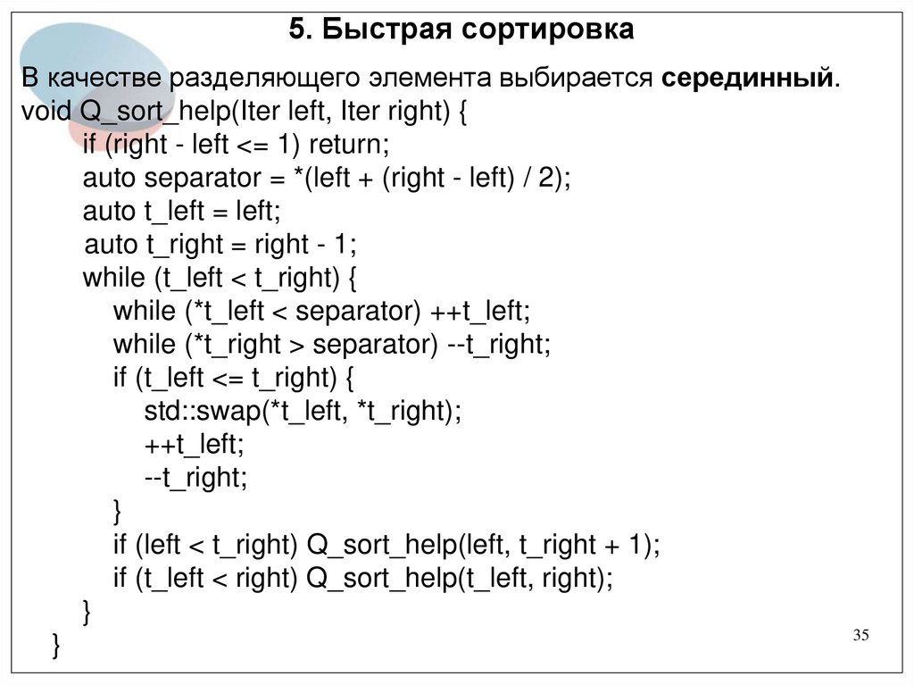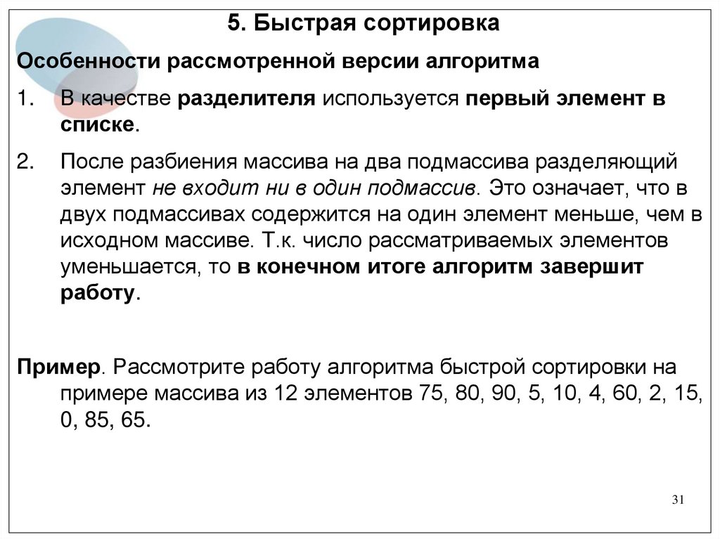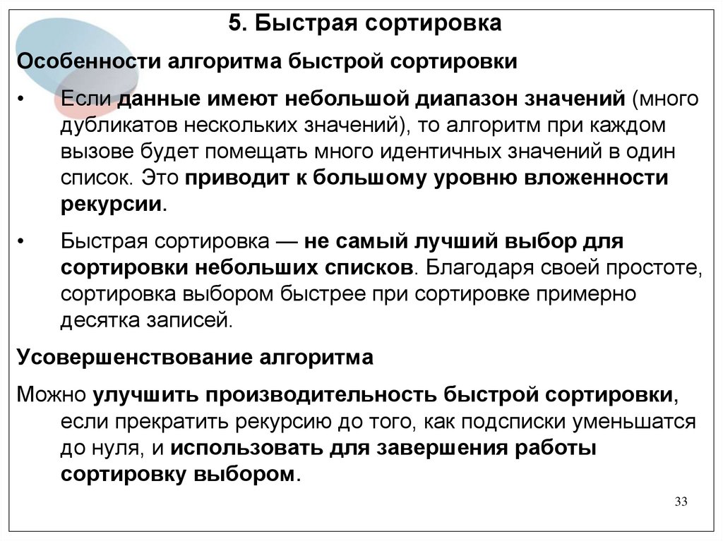 5. Быстрая сортировкаОсобенности рассмотренной версии алгоритма