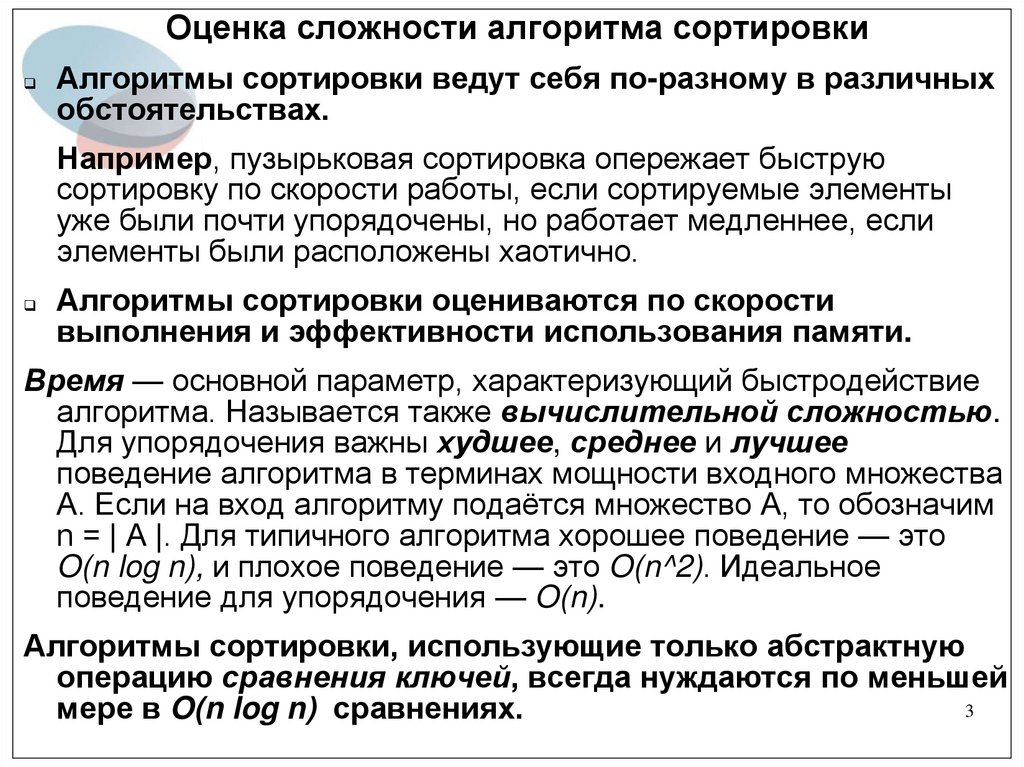 Оценка сложности алгоритма сортировкиАлгоритмы сортировки ведут себя по-разному в различных