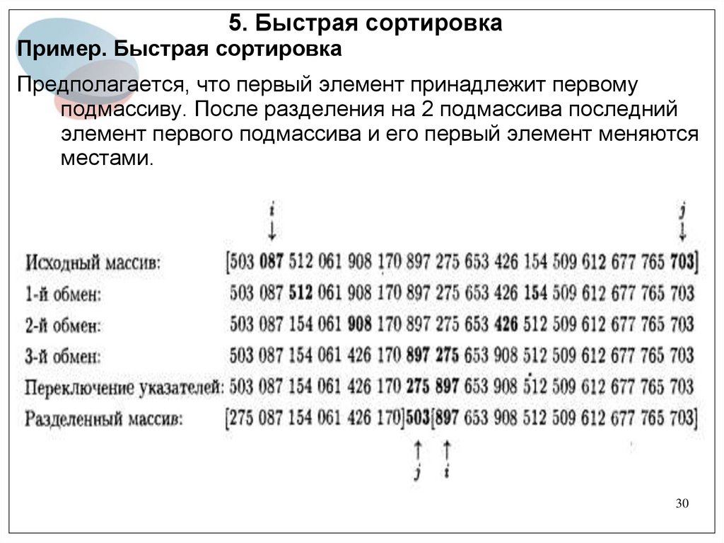 5. Быстрая сортировкаПример. Быстрая сортировка