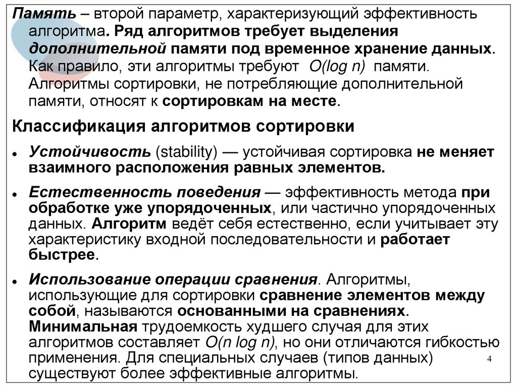 Память – второй параметр, характеризующий эффективностьалгоритма. Ряд алгоритмов требует выделения