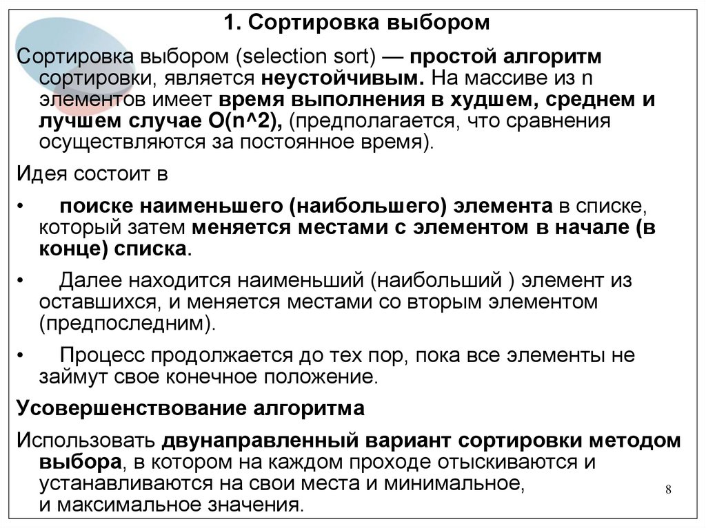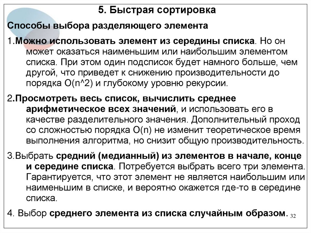 5. Быстрая сортировкаСпособы выбора разделяющего элемента
