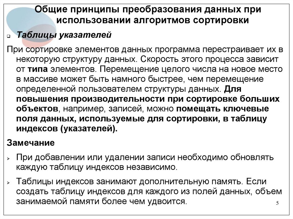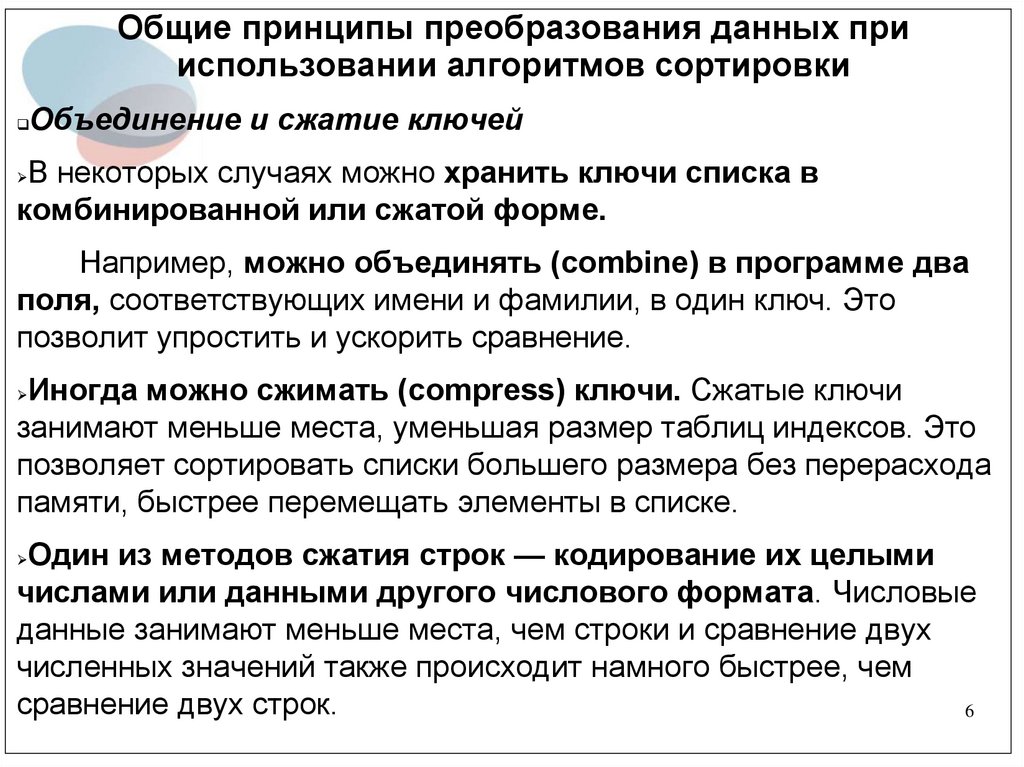 Общие принципы преобразования данных прииспользовании алгоритмов сортировки