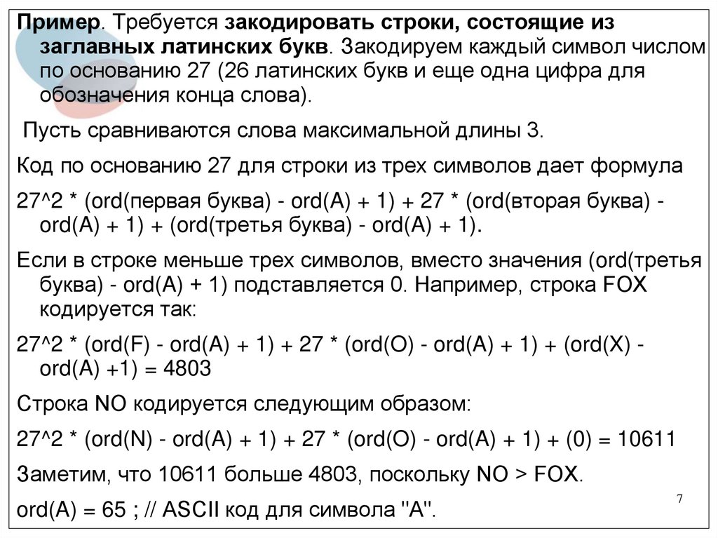 Пример. Требуется закодировать строки, состоящие иззаглавных латинских букв. Закодируем каждый символ числом