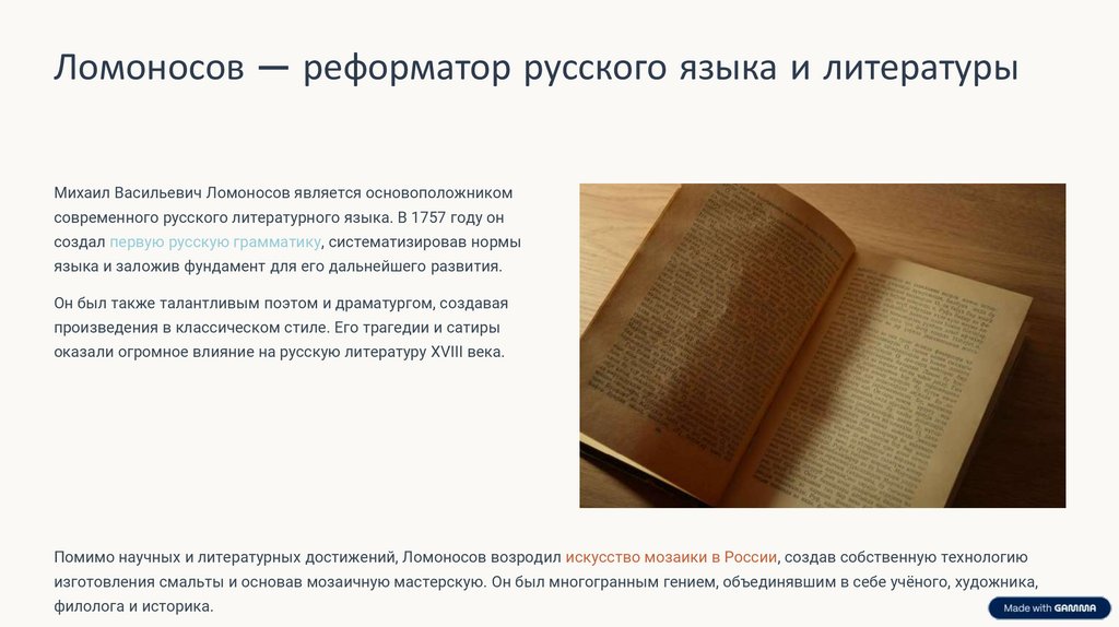 Ломоносов — реформатор русского языка и литературыМихаил Васильевич Ломоносов является основоположником