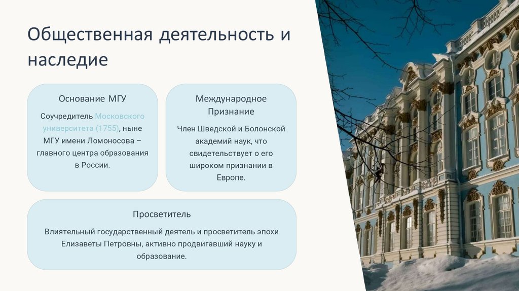 Елизаветы Петровны, активно продвигавший науку и