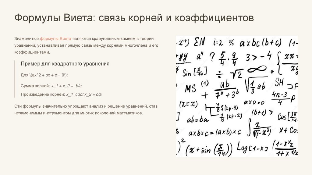 Основа теории уравнений: Формулы Виета стали фундаментом для понимания взаимосвязи между корнями и