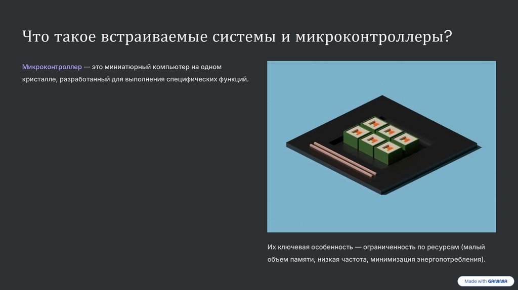 Что такое встраиваемые системы и микроконтроллеры?Микроконтроллер — это миниатюрный компьютер на одном