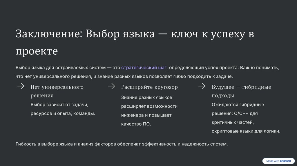 Выбор языка для встраиваемых систем — это стратегический шаг, определяющий успех проекта. Важно понимать,