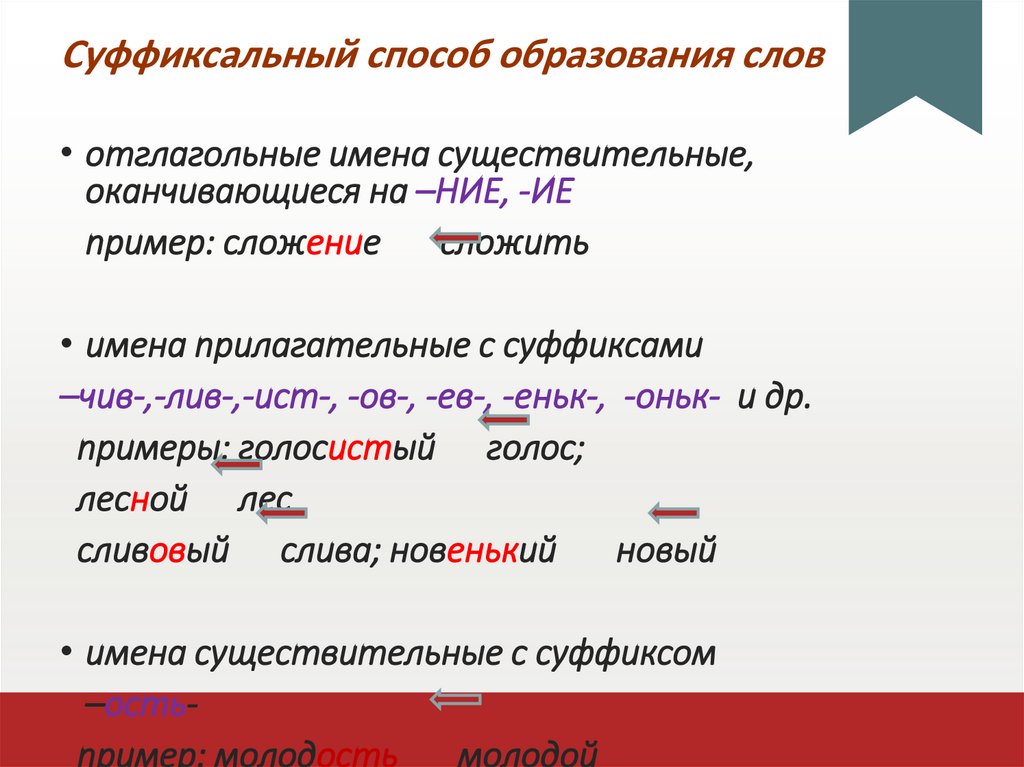 Суффиксальный способ образования слов• отглагольные имена существительные,