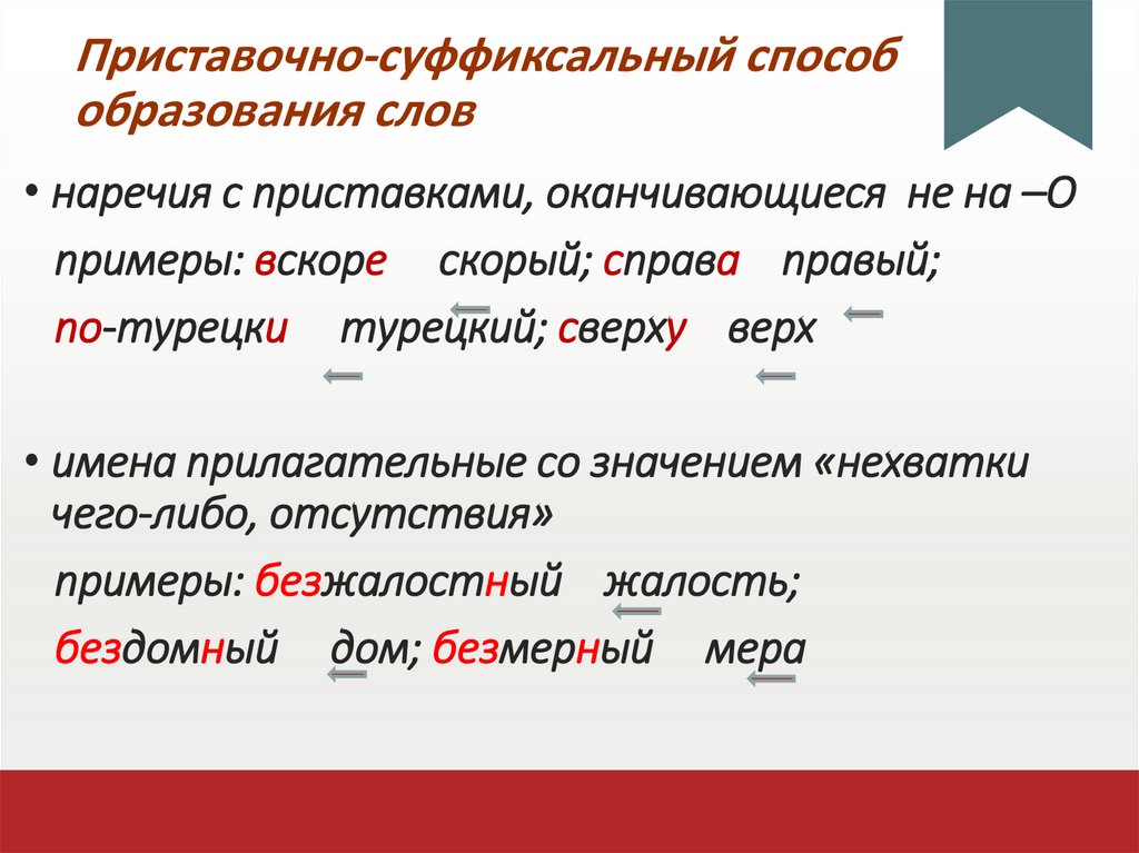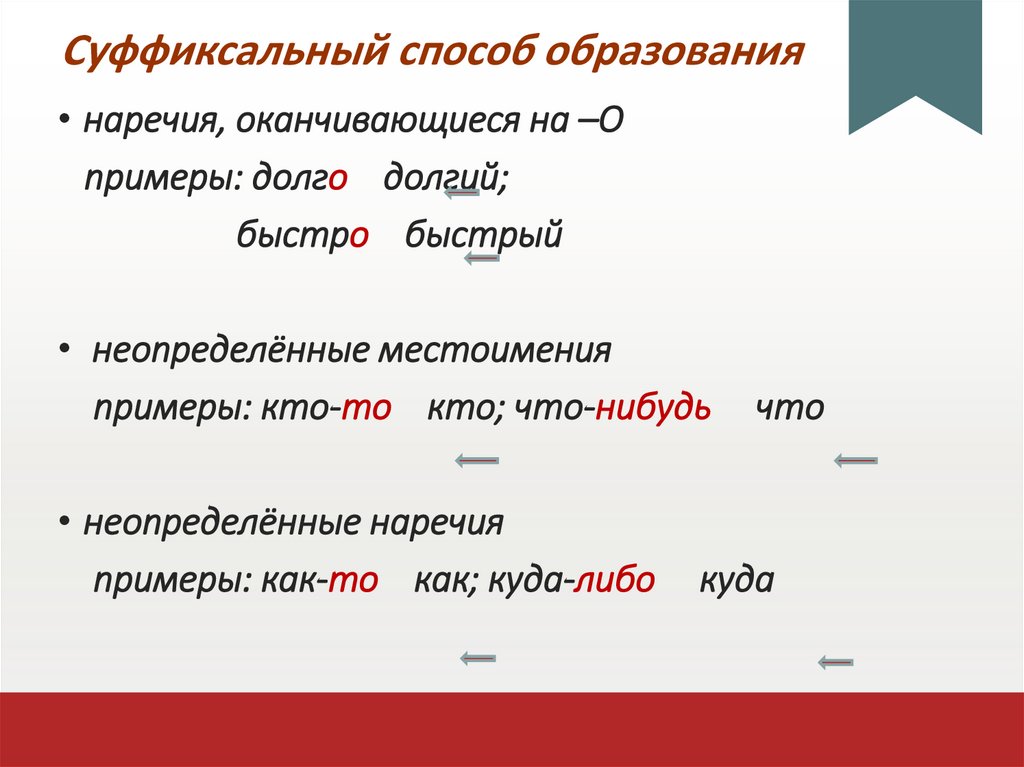 Суффиксальный способ образования• наречия, оканчивающиеся на –О