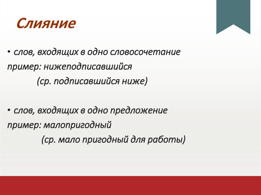 Слияние• слов, входящих в одно словосочетание