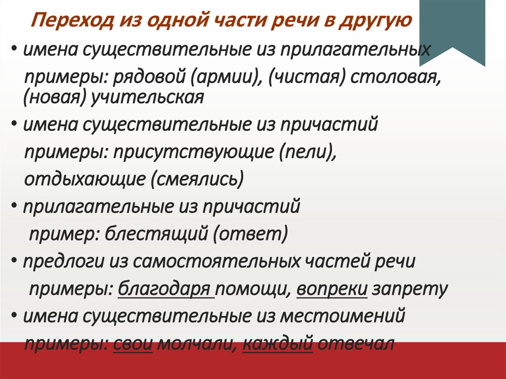 Переход из одной части речи в другую• имена существительные из прилагательных