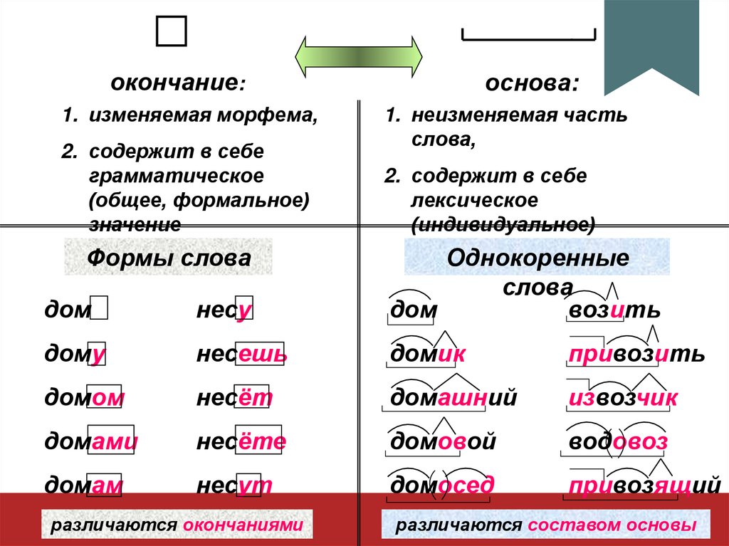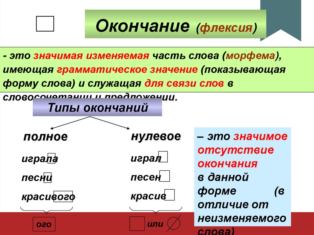 окончание:1. изменяемая морфема,
