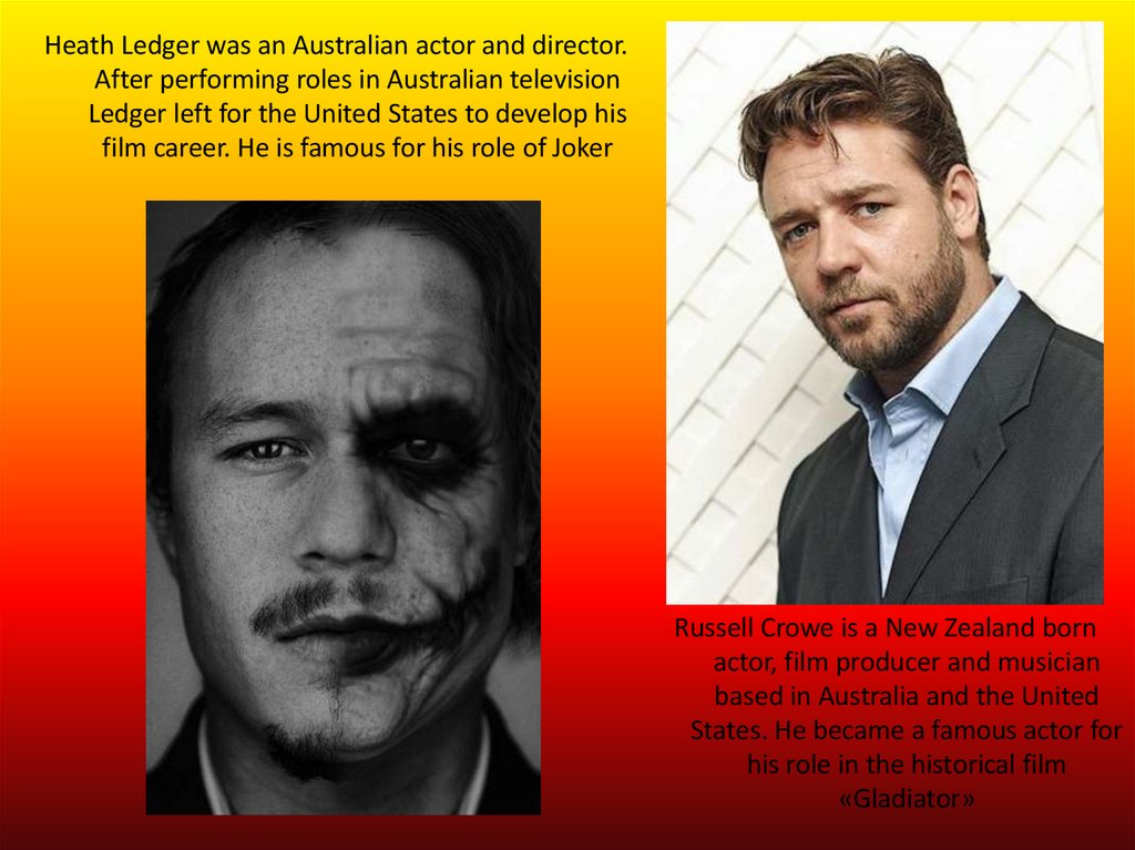 Heath Ledger was an Australian actor and director.After performing roles in Australian television