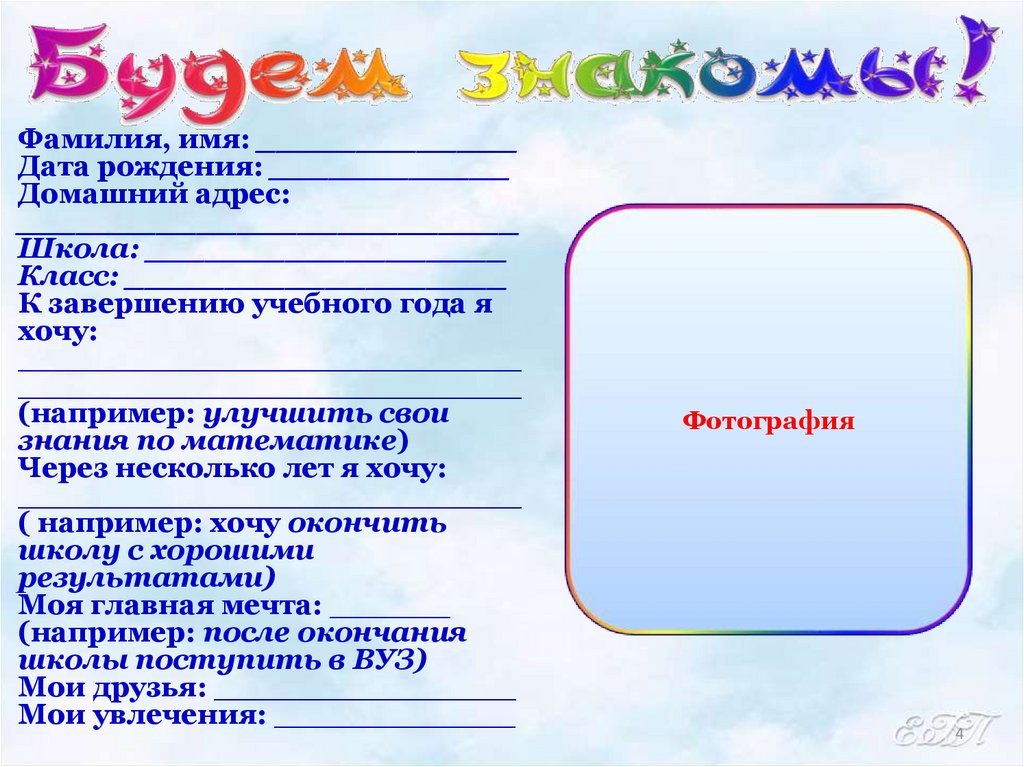 Цели, самоанализ, результаты психологических диагностик,автобиография. Включает в себя личные данные учащегося, ведущего
