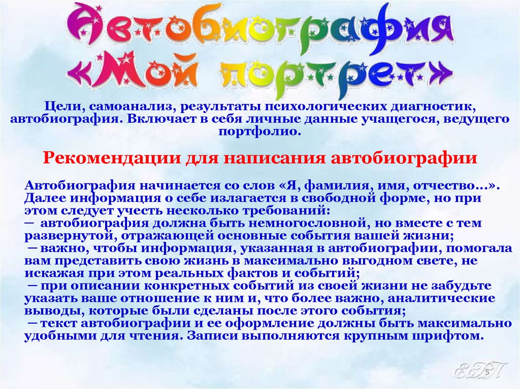 ─ важно, чтобы информация, указанная в автобиографии, помогала