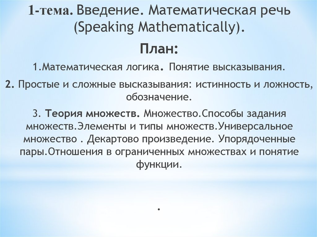 1-тема. Введение. Математическая речь(Speaking Mathematically).