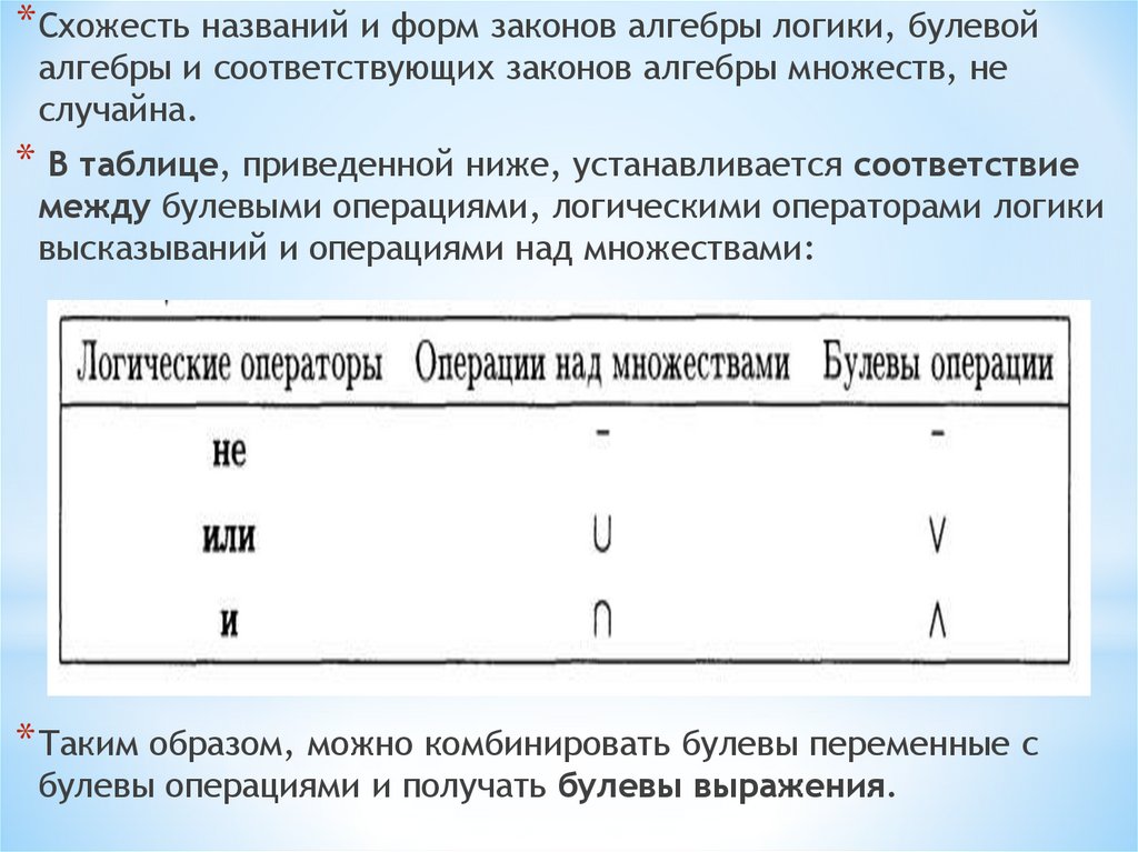 можно говорит об «алгебре логики».