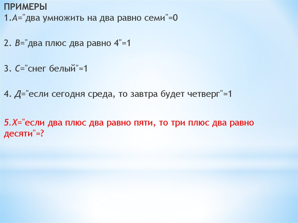 5.Х="если два плюс два равно пяти, то три плюс два равно