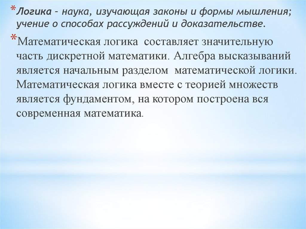 *Математическая логика составляет значительную