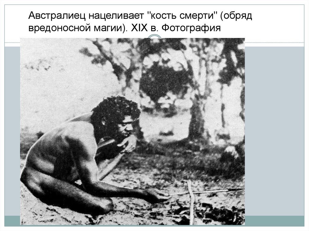 Австралиец нацеливает "кость смерти" (обрядвредоносной магии). XIX в. Фотография