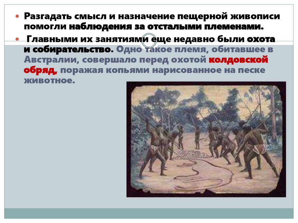 Разгадать смысл и назначение пещерной живописипомогли наблюдения за отсталыми племенами.
