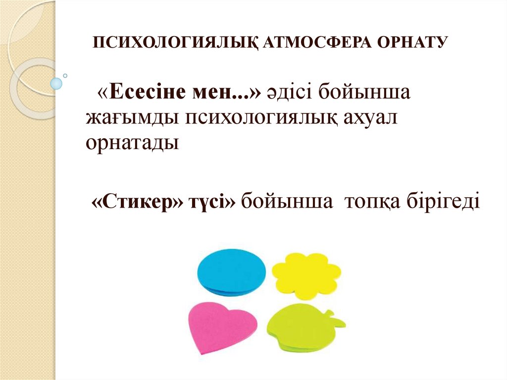 ПСИХОЛОГИЯЛЫҚ АТМОСФЕРА ОРНАТУ«Есесіне мен...» әдісі бойынша