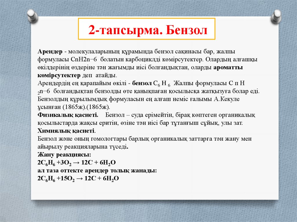 2-тапсырма. БензолАрендер - молекулаларының құрамында бензол сақинасы бар, жалпы