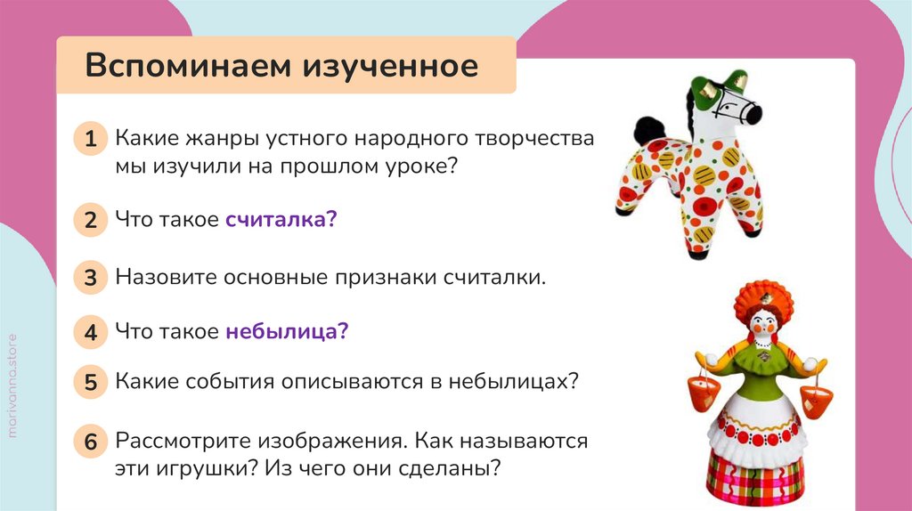 Вспоминаем изученное1 Какие жанры устного народного творчества