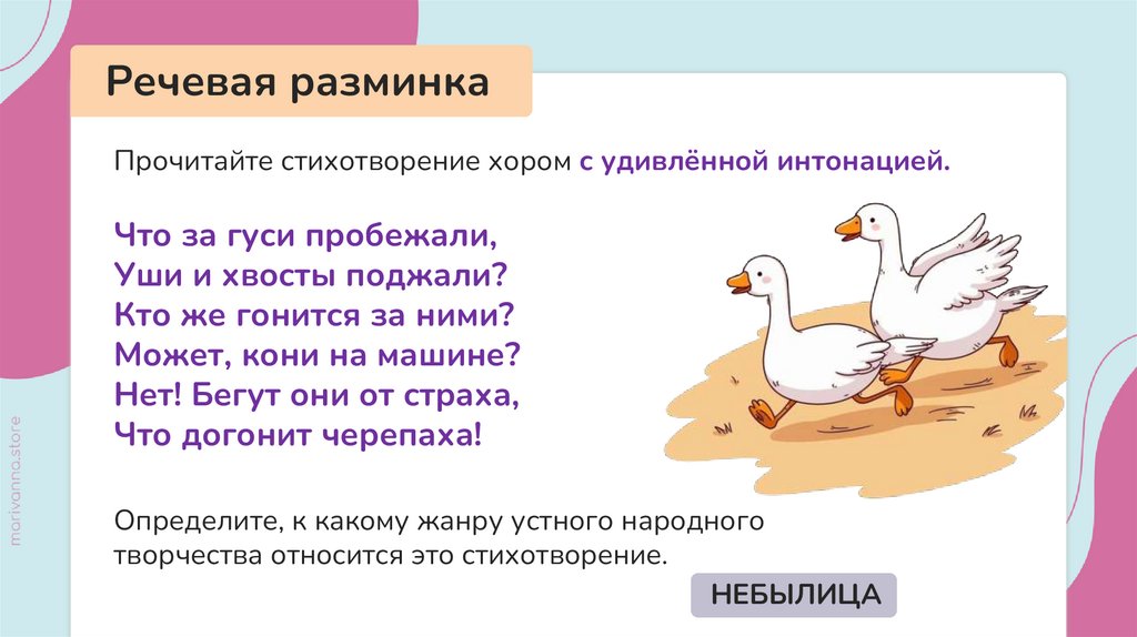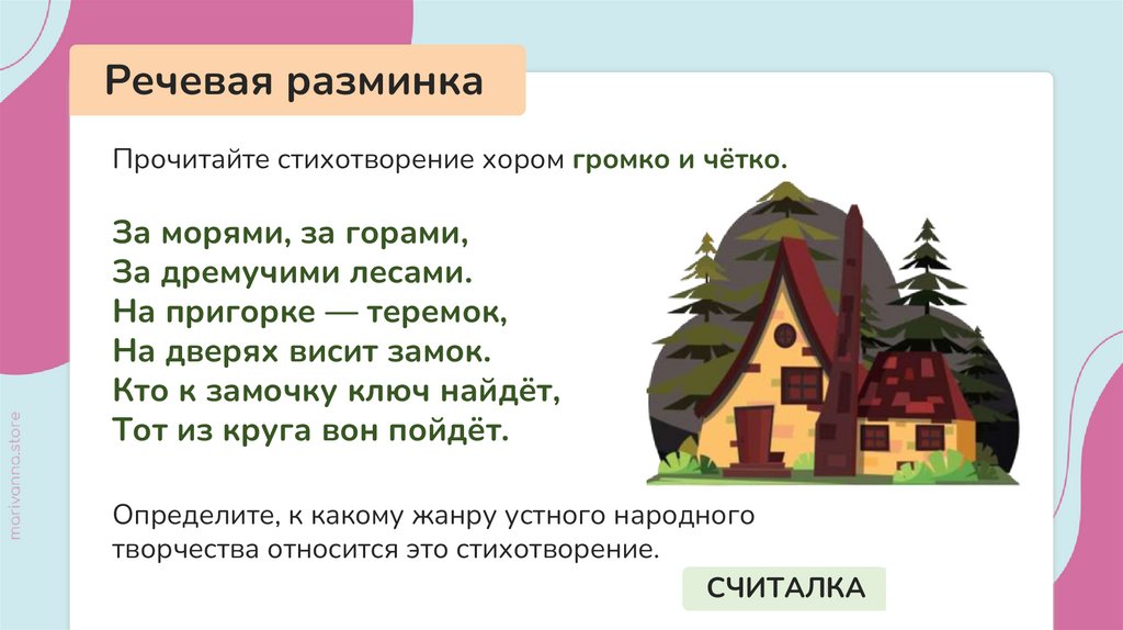 Речевая разминкаПрочитайте стихотворение хором громко и чётко.
