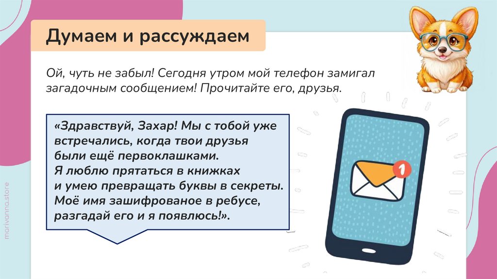 Думаем и рассуждаемОй, чуть не забыл! Сегодня утром мой телефон замигал
