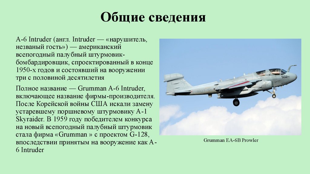 Общие сведенияA-6 Intruder (англ. Intruder — «нарушитель,