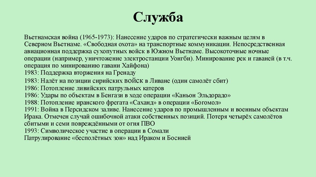 СлужбаВьетнамская война (1965-1973): Нанесение ударов по стратегически важным целям в